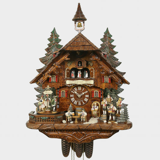 Each clock is a masterpiece made by Master Clock Makers using traditional techniques passed down through generations. From simple 1-day movements to elaborate 8-day musical clocks with moving figurines, every piece is hand-carved from basswood and features authentic mechanical movements.